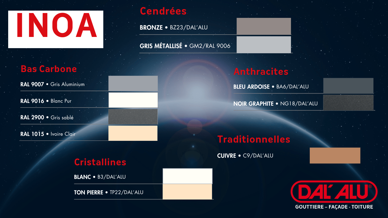 INOA représente une véritable révolution dans le monde des gouttières aluminium. Première gouttière éco-conçue du marché, elle bénéficie d’une Fiche de Déclaration Environnementale et Sanitaire (FDES) qui atteste de ses performances exceptionnelles.